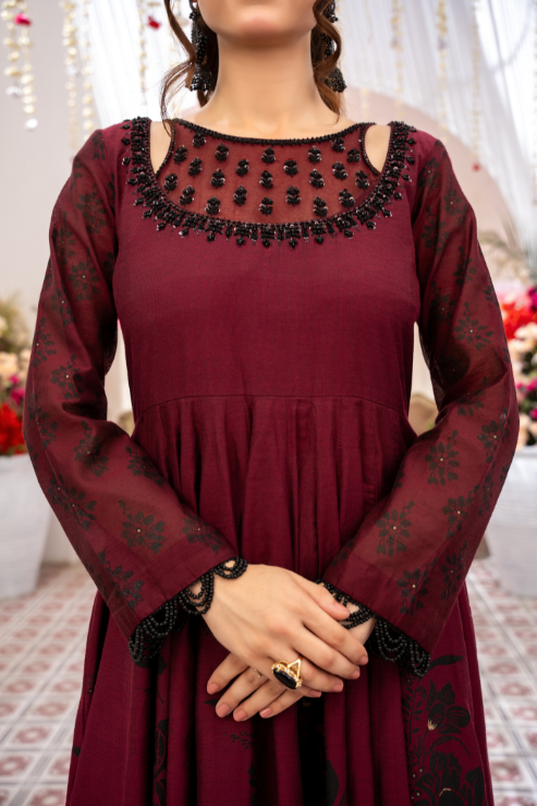 Reen brings festive charm to life. Adorned with delicate moti, sitara, and pearl handwork on the neckline, paired with playful tassels and heritage blockprint—this 3-piece ensemble is made for moments that matter. Finished with a net chan dupatta and handcrafted lace for that perfect festive finish.