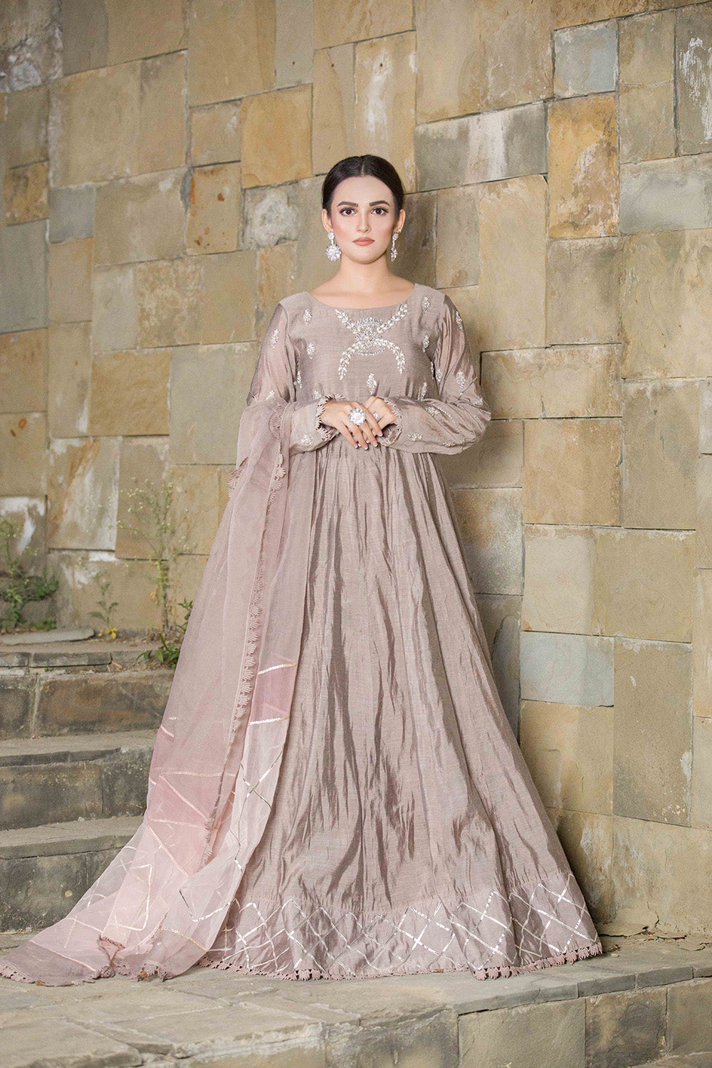 Introducing our exquisite soft mauve paper silk frock, graced with a handwork motif on the front neck and embellishments on the sleeves, adding a touch of elegance to your attire. The sleeves and daaman are delicately finished with intricate gota lace, enhancing the overall charm of this ensemble. To complete the look, we've included a sheer organza dupatta adorned with tasteful gota and shiffli lace, adding a touch of sophistication and grace to your outfit.