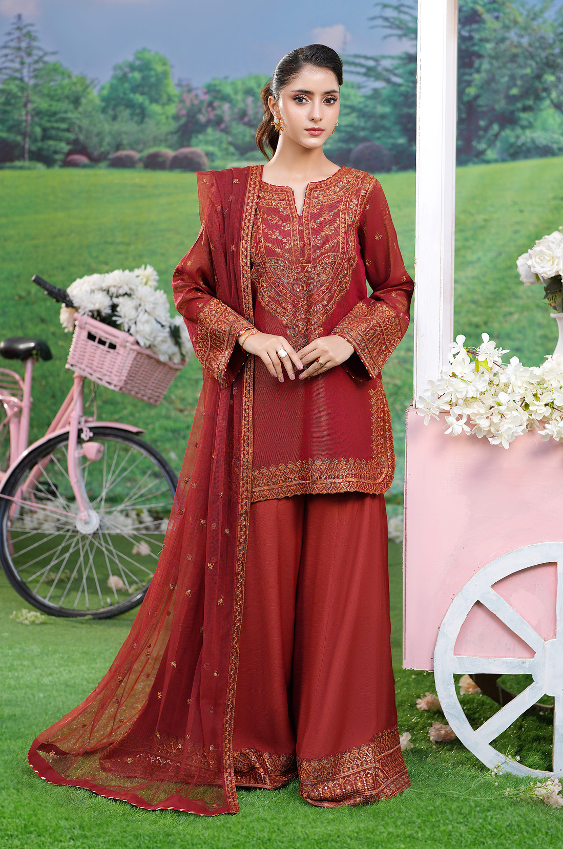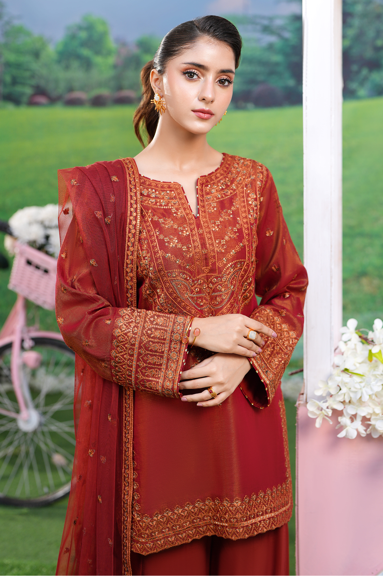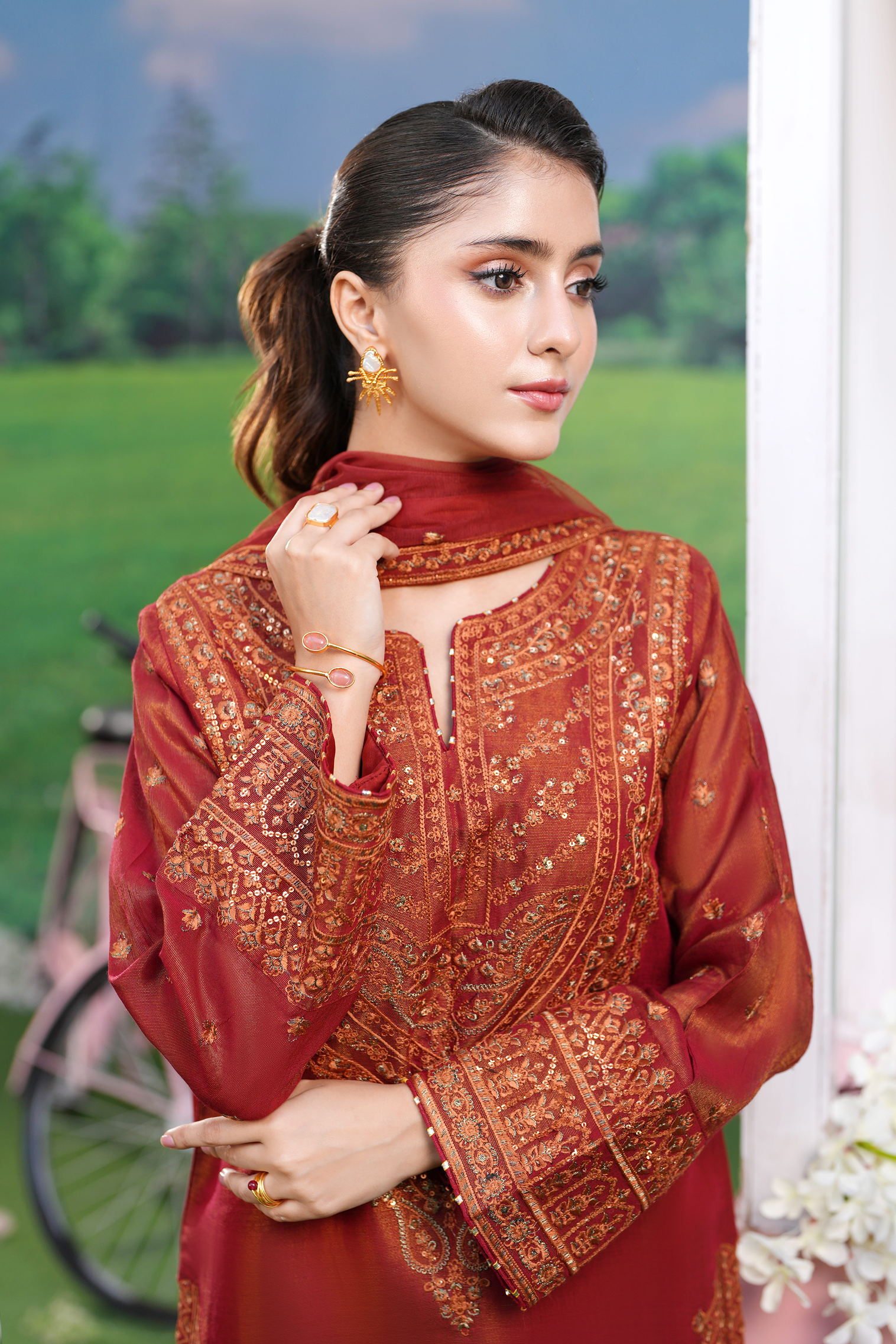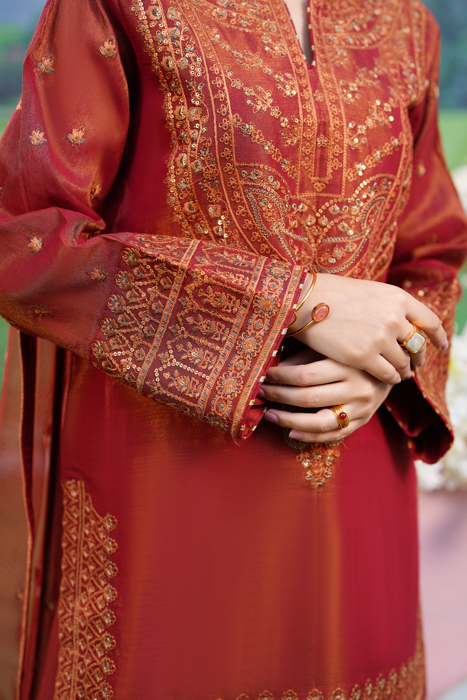 Artistry meets a modern silhouette in this beautifully detailed piece, featuring intricate high-density floral embroidery across the entire front and sleeves for a rich, elevated look. Coordinated motifs flow seamlessly from shoulder to cuff, while the signature curved border adds a soft, feminine drape and a contemporary twist to the classic cut. With its textured, premium finish, this design offers refined elegance with a distinctive edge.