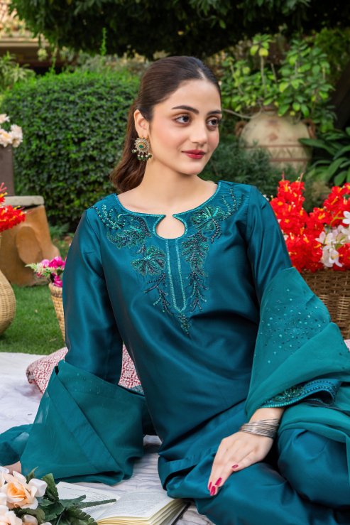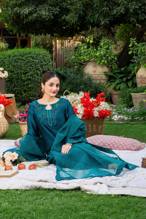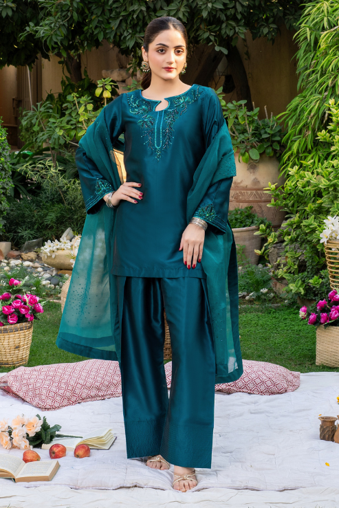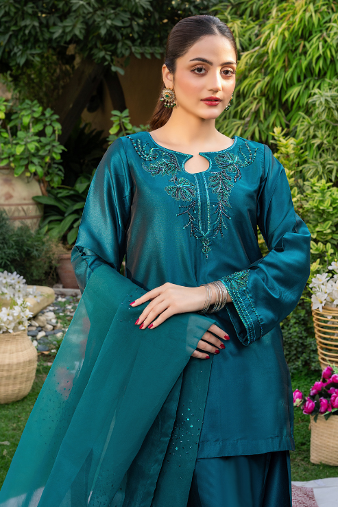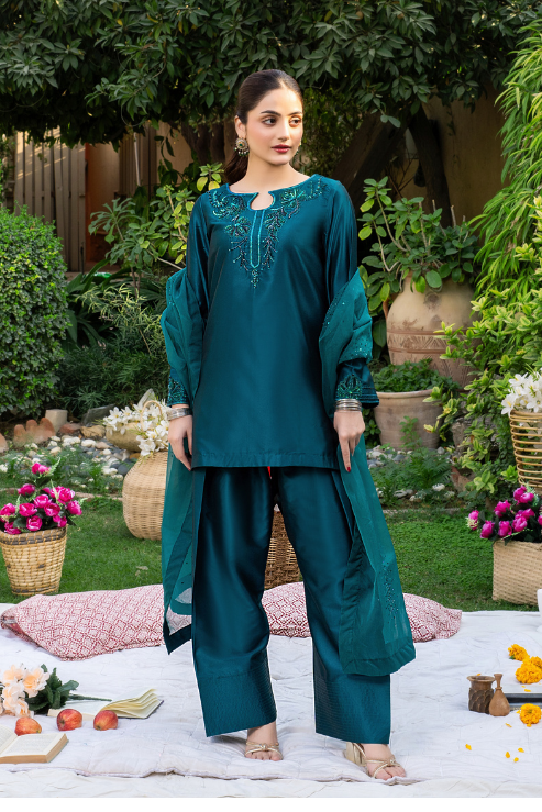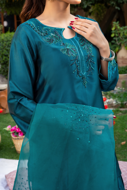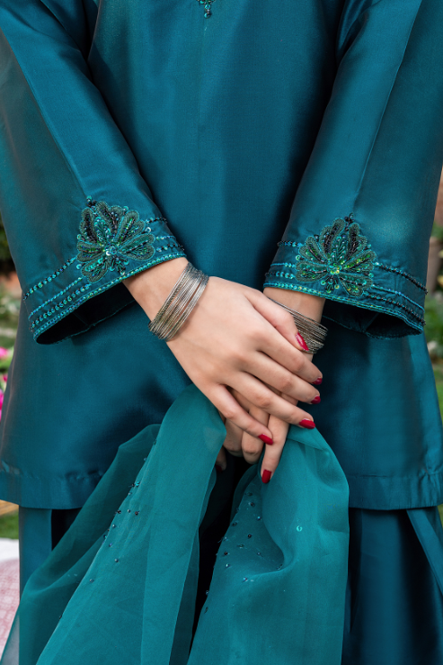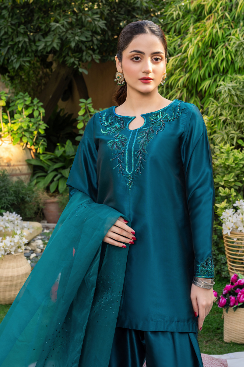 A sophisticated 3-piece ensemble in a dreamy green hue. Featuring a beautifully crafted shirt paired with elegant trousers, this look is the epitome of effortless charm. Perfect for your festive and formal moments!